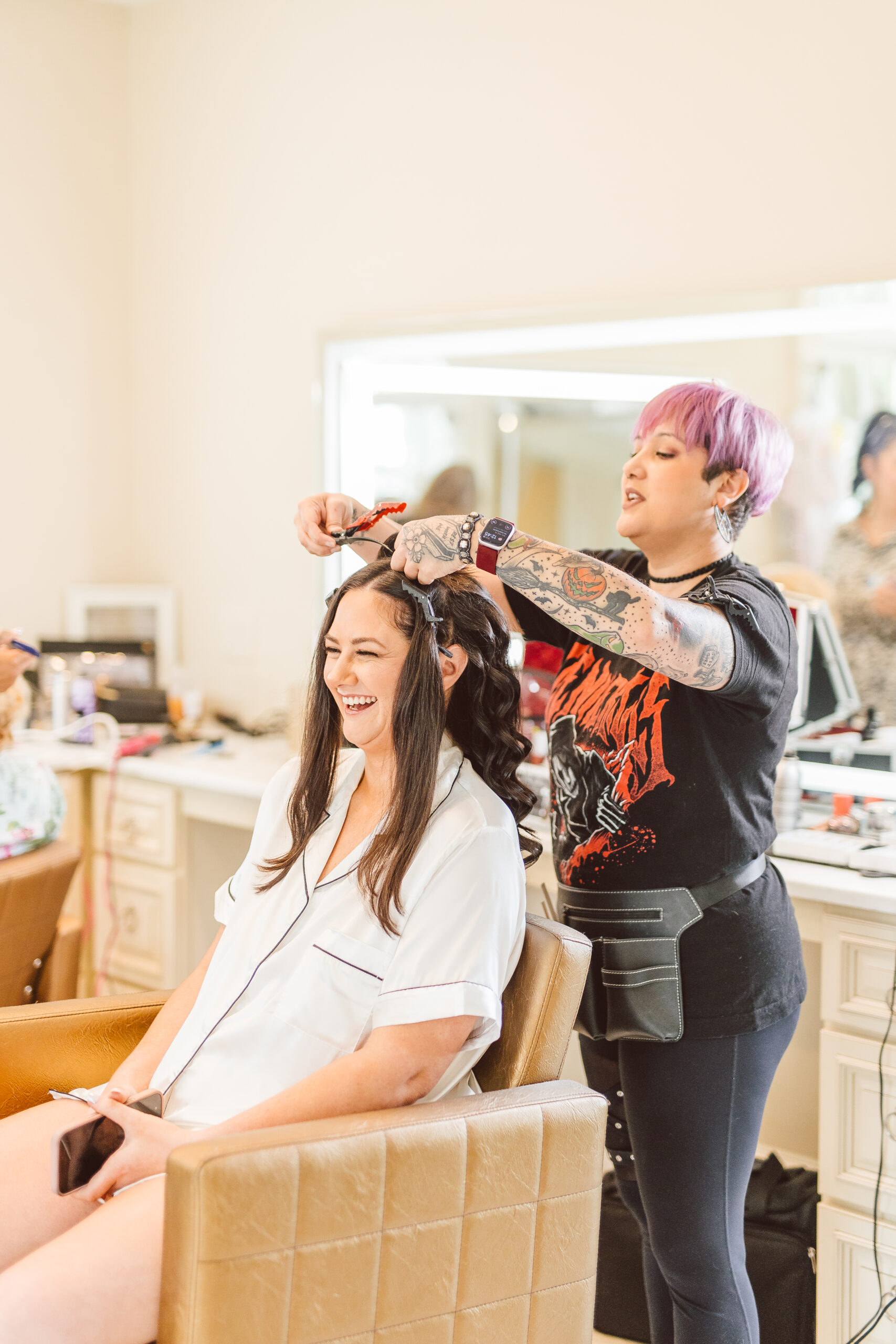 bride getting her makeup done before the ceremony