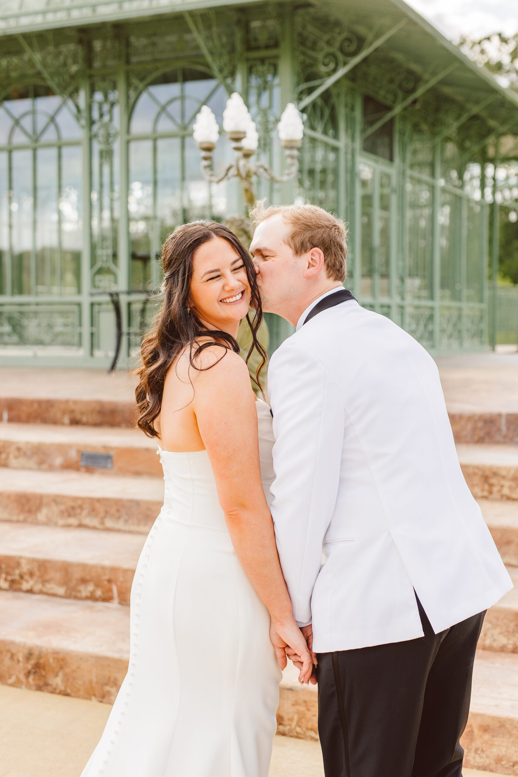 groom kissing the bride on the cheek